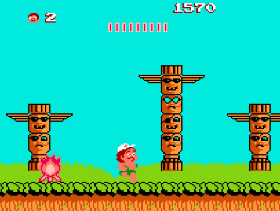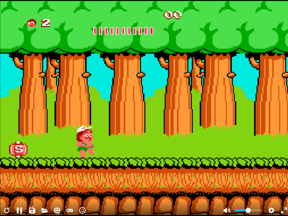 원더보이 게임 화면인데요. 자동으로 앞으로 나아가게 됩니다 ㅎㅎ
